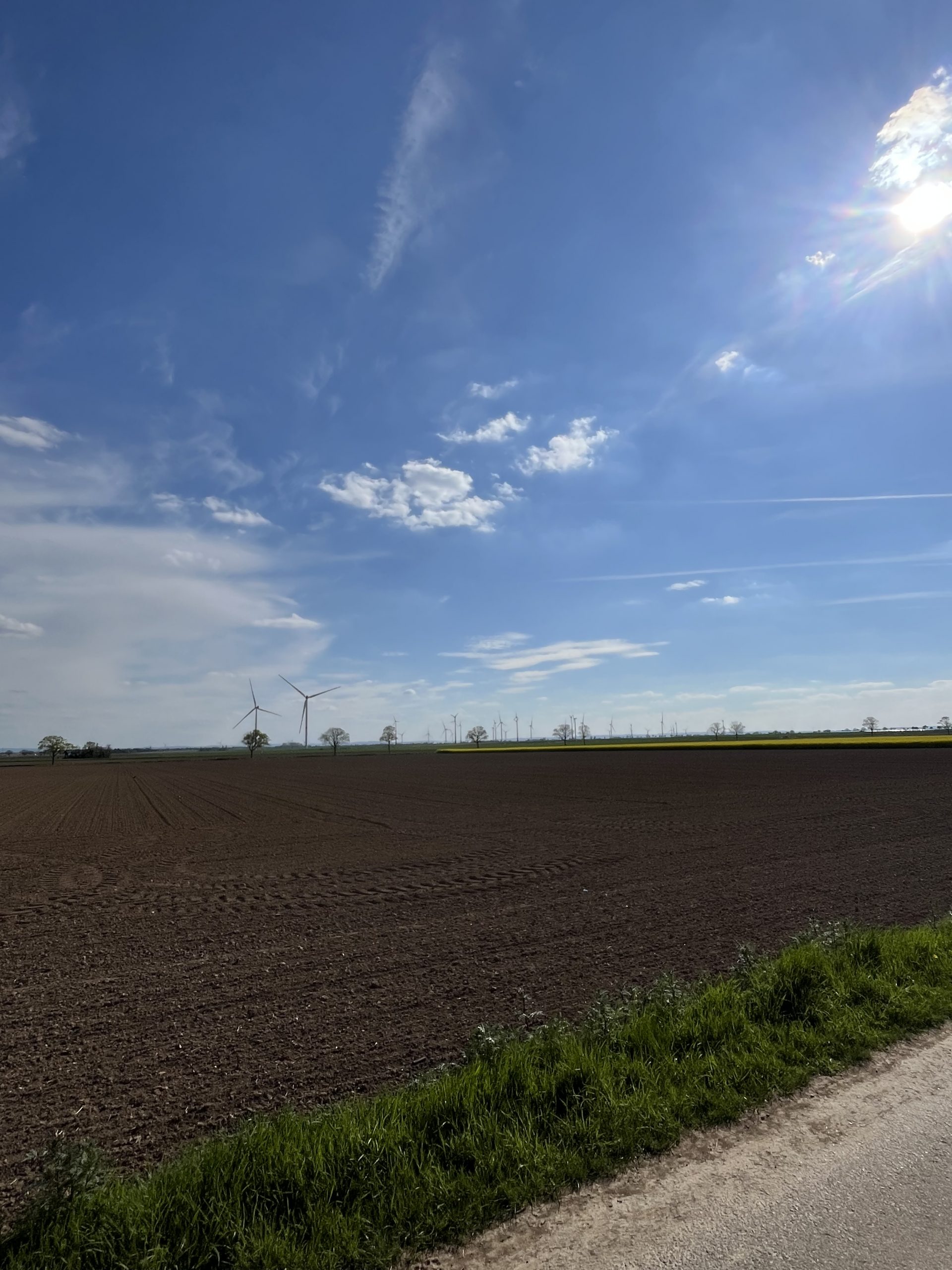 Es ist flach, riesige Felder, blühende Landschaften ,Windkraft Oasen und Kraftwerke säumen den Weg. In einer kleinen Stadt buche ich ein Zimmer, den Namen habe ich vergessen.