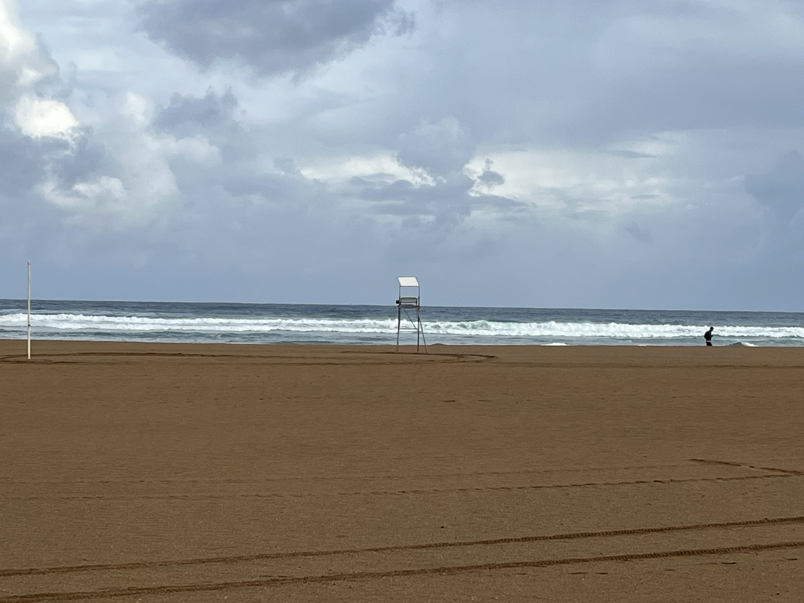 Um 10:00 Uhr muss ich die erste Bar aufsuchen wegen Sturm und Regen, es wird nicht die letzte sein. Ich habe teilweise Gegenwind mit 40 km/h, alle 30 Minuten kommt die nächste Regenwand mit einer Dusche.